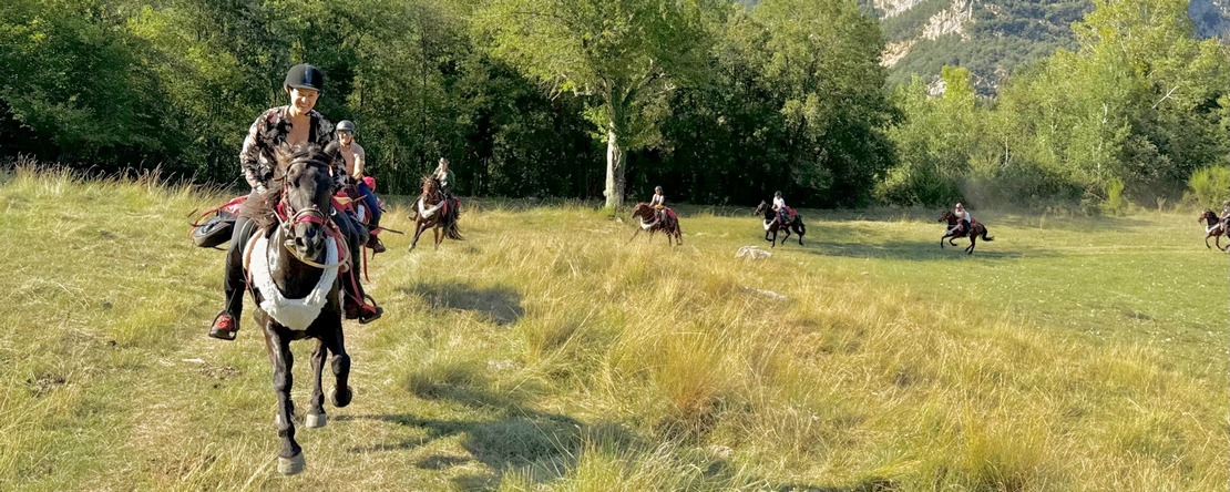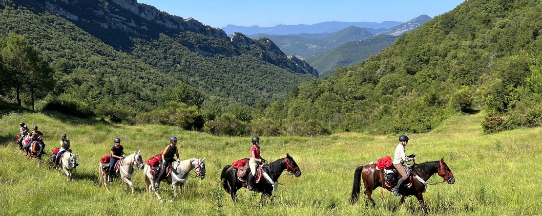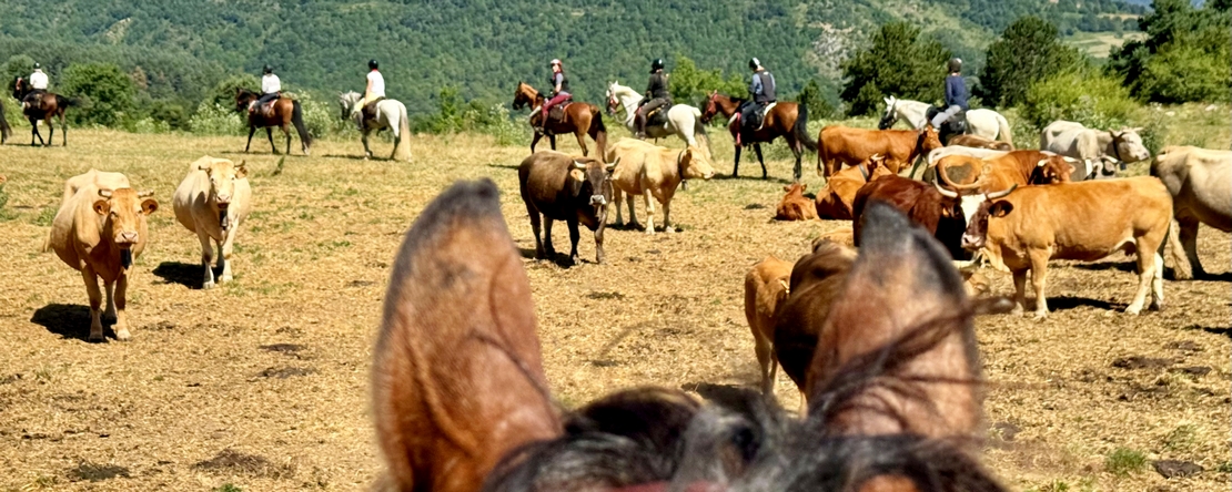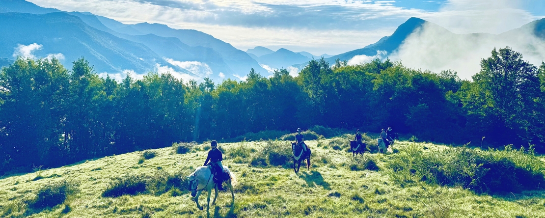 Seven rivers, crystal-clear mountain streams, and sunny, refreshing swimming breaks, the 7 Ríos Trail (7 Rivers) is a summer horseback adventure through the wild and romantic Pyrenees of Catalonia. Each day, natural pools and babbling brooks invite you to cool off in clear waters. The trail winds through dense forests, rugged rocky valleys, and up to green alpine pastures with breathtaking views. With riverside picnics, a night under the stars, and encounters with wild Pyrenean horses, this ride offers an unforgettable natural experience in perfect harmony with the elements.